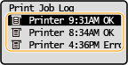 When <Display Job Log> is set to <Off>, you cannot check the print logs. <Display Job Log>