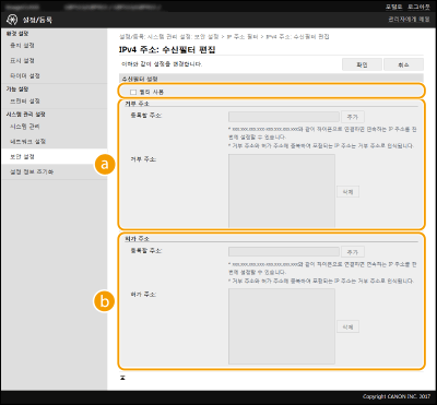 <IPv4 주소 필터> <IPv6 주소 필터> ![]() IP 주소 입력 양식