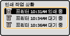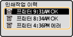 <작업이력 표시>가 <해제>로 설정된 경우 인쇄 로그를 확인할 수 없습니다. <작업이력 표시>