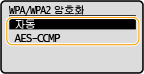 무선 라우터의 설정과 일치하도록 기기가 자동으로 AES-CCMP 또는 TKIP를 선택하도록 설정합니다.