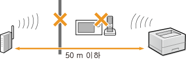 기기와 무선 라우터 사이에 벽과 같은 장애물이 있습니까?