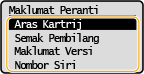 Memaparkan jumlah baki di dalam kartrij toner dan kartrij gelendong. Bahagian dalaman yang lain mungkin mencapai akhir hayat sebelum jumlah baki dalam kartrij toner atau kartrij gelendong mencapai akhir hayatnya.