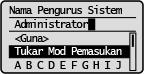 untuk memaparkan skrin untuk memilih jenis teks yang dimasukkan. Pilih jenis teks dan tekan