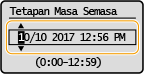 Tetapkan <Zon Masa> sebelum menetapkan tarikh dan masa semasa. Jika <Zon Masa> tetapan diubah, tarikh dan masa semasa juga diubah sewajarnya.