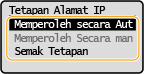 Semak bahawa <IP Auto> ditetapkan kepada <Aktif>.