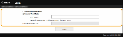 เลือก [System Manager Mode] หรือ [General User Mode]