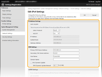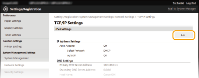คลิก [Settings/Registration] บนหน้าพอร์ทัล หน้าจอ Remote UI