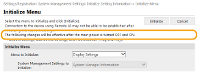 คุณสามารถเปลี่ยนการตั้งค่าบางอย่าง เมื่อเข้าสู่ระบบใน System Manager Mode เท่านั้น