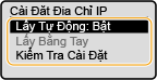 Kiểm tra xem <IP Tự Động> được cài đặt thành <Bật> chưa.