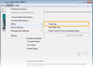 Cleaning consumes the toner cartridge and the drum cartridge. Make sure that there is sufficient amount remaining in the toner cartridge and the drum cartridge beforehand. Checking the Remaining Amount of Consumables