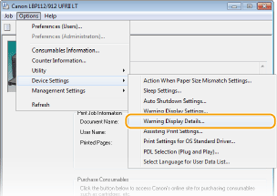 Select [Options]  [Device Settings]  [Warning Display Details].