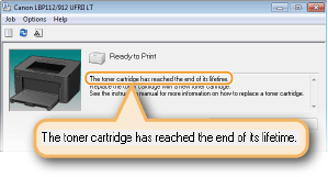 If you are using a toner cartridge that is not a Canon product or the amount remaining in the toner cartridge cannot be detected correctly, it is possible that no message will be displayed.