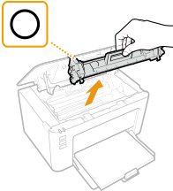 Do not shake or tilt the toner cartridge. Also, make sure to avoid applying shocks to the toner cartridge, such as by hitting it against something. Doing so may cause the toner left in the toner cartridge to leak. Remove the toner cartridge gently at the same angle as the slot.