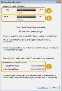 The displayed amount remaining in the toner cartridge or the drum cartridge can be used only as a guide and may differ from the actual amount.