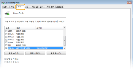 [포트] 탭에서 포트가 올바르게 선택되었는지 확인합니다.