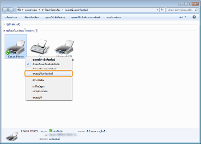 คลิกขวาที่ไอคอนไดรเวอร์ของเครื่องนี้ และคลิก [คุณสมบัติเครื่องพิมพ์] หรือ [คุณสมบัติ]