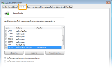 ในแท็บ [พอร์ต] ตรวจสอบว่าเลือกพอร์ตไว้ถูกต้อง