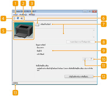 * คุณสามารถเปลี่ยนการตั้งค่าที่กำหนดว่าจะให้หน้าต่างแสดงสถานะของเครื่องพิมพ์ปรากฏขึ้นเมื่อใด เปลี่ยนการตั้งค่าได้ด้วยเมนู [ตัวเลือก]  [การกำหนดลักษณะ (ผู้ใช้)] หรือกล่องโต้ตอบ [การกำหนดลักษณะ (ผู้ดูแลระบบ)] ของหน้าต่างแสดงสถานะของเครื่องพิมพ์ สำหรับรายละเอียด โปรดดู วิธีใช้ เมนู [วิธีใช้]