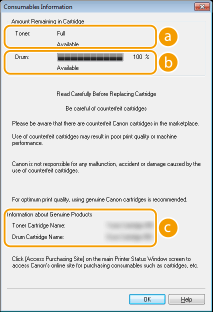 The displayed amount remaining in the toner cartridge or the drum cartridge can be used only as a guide and may differ from the actual amount.