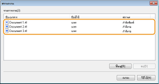รายการเอกสารปรากฏขึ้น โดยแสดงเอกสารที่กำลังพิมพ์หรือรอพิมพ์อยู่