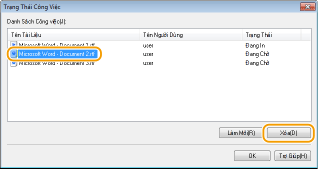 Chọn tài liệu mà bạn muốn hủy, và bấm [Xóa].