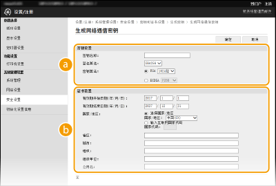 按照以下顺序输入证书有效期的开始日期:年、月、日。无法设置早于 [有效期开始日期(年/月/日)] 的日期。