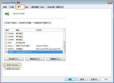 在 [端口] 选项卡中,确定选中 [启用双向支持] 复选框。