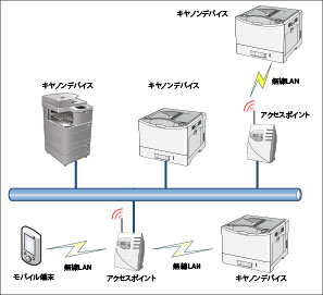 上記アクセスポイントとデバイスが有線LANまたは無線LAN接続されている