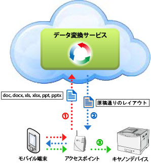 Microsoft Officeファイルを印刷するときは、「データ変換サービス」でレイアウト補正すると、高品質の印刷結果を得られます。