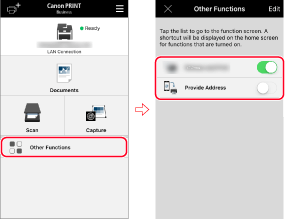 You can also use the app to copy, send faxes, or scan and send by e-mail from a multi-function device or printer.
