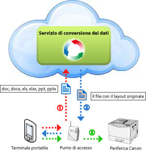 Se si utilizza il Servizio di conversione dei dati, viene eseguito un rendering mediante la comunicazione con un server su Internet. A seconda del contenuto dei dati da stampare e dell'ambiente di comunicazione in uso, il caricamento e il download dei dati possono impiegare alcuni minuti.