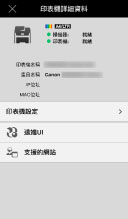 您可顯示裝置的遠端UI。當[使用遠端UI檢查詳細資料。]訊息顯示在[掃描器]/[印表機]中時,輕觸[遠端UI]可查看資訊。