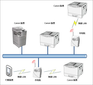 您目前使用的裝置及印表機必須透過 LAN 或無線 LAN 連接。
