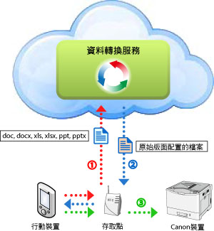 列印 Microsoft Office 檔案時,您可使用資料轉換服務在網際網路上執行版面配置修正,便可列印原始版面配置的檔案。