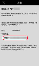 輸入在 Canon PRINT Business 的 [掃描] 畫面中顯示的主機名稱。
