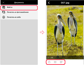 Можно печатать не только документы, с которыми может работать приложение, но также изображения из фотоальбома и веб-страницы.