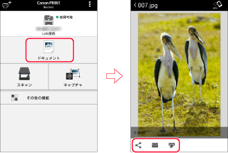 モバイル端末にインストールされた他のアプリで開いたデータを、本アプリのドキュメントとして保存したり、印刷したりできます。