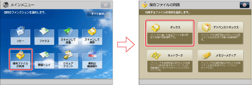 1.[保存ファイルの利用]→[ボックス]を押します。