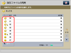 ]でジョブが保存されているボックス番号を選択して、[OK]を押します。