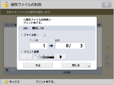 プリントが開始されると、次の画面が表示されます。