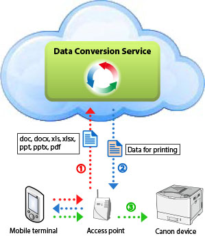 Using the Data Conversion Service connects you to a server on the Internet that converts the data. Depending on the content of the data to be printed and the communication environment you are using, data uploading and downloading may take several minutes each.
