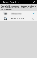 L'activation de chaque fonction affiche un raccourci vers l'écran d'accueil.