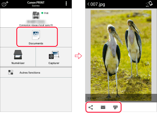 Vous pouvez récupérer des images provenant d'un appareil photo et les afficher au format PDF dans l'application.