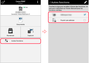 Vous pouvez aussi utiliser l’application pour copier, envoyer des fax ou numériser et envoyer par e-mail à partir de périphériques ou d’imprimantes multifonctions.
