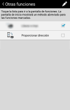 En la pantalla [Otras funciones], puede utilizar las funciones opcionales disponibles para esta aplicación y mostrar los accesos directos a las funciones en la pantalla de inicio.