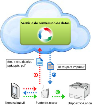 Para imprimir archivos de Microsoft Office, debe utilizar el Servicio de conversión de datos.