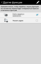 На экране [Другие функции] можно использовать дополнительные функции, доступные для этого приложения, и отобразить клавиши быстрого вызова функций на главном экране.