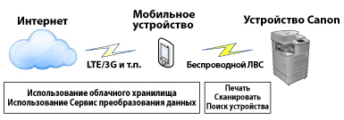 Чтобы использовать службу, для которой требуется подключение к Интернету (например, «Сервис преобразования данных» или облачное хранилище), убедитесь в том, что сеть Wi-Fi, к которой подключено мобильное устройство, имеет подключение к Интернету. Оно может подключаться к Интернету из сети мобильного телефона, такой как LTE или 3G, в средах, где оно не может подключиться к Интернету из сети Wi-Fi, в таких случаях пользователю придется оплачивать стоимость соединения. |