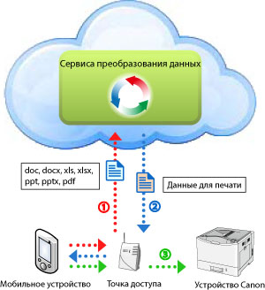 При использовании службы Сервис преобразования данных происходит подключение к серверу в Интернете, который выполняет преобразование данных. В зависимости от содержания данных, которые требуется печатать, и используемой среды передачи данных загрузка данных на сервер и с сервера может занимать несколько минут.