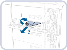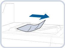Slide the jammed paper using hands as far as it can go in the paper feeding direction, in the space made available by opening the D-C1 guide.